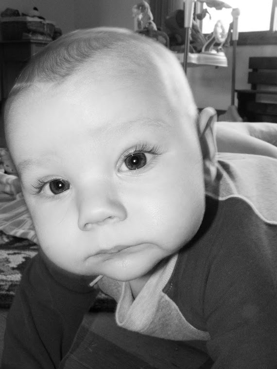 Kruse also went from a crawling position to sitting. It was his first time and I missed it! I walked out of the room for 15 seconds, if that, and when I came back he was sitting up! It's strange to see my baby grow so fast. I don't remember AJ's baby-hood going by so fast! :(